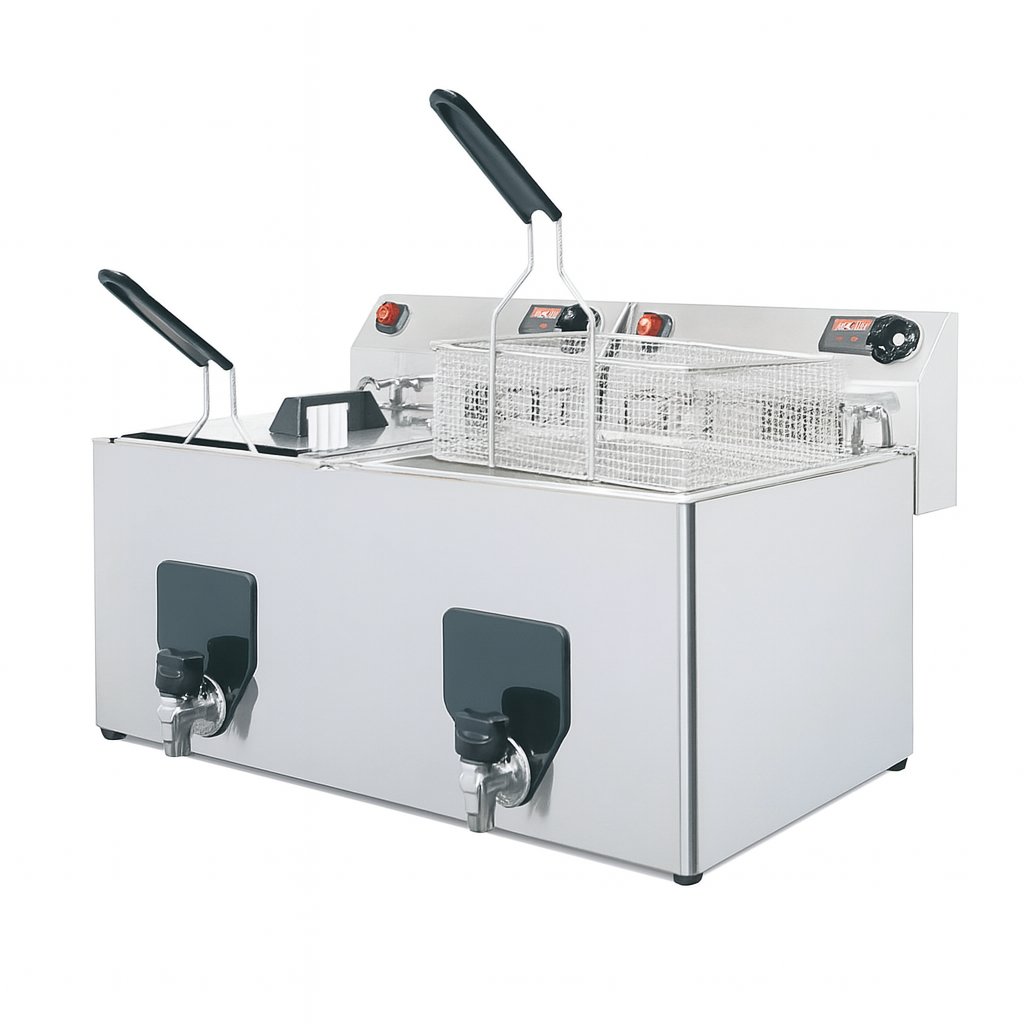 – La cuba en acero inoxidable dispone en el fondo de zona fría que permite depositar los residuos para una fácil limpieza, manteniendo el aceite siempre limpio.